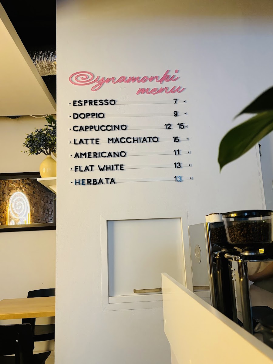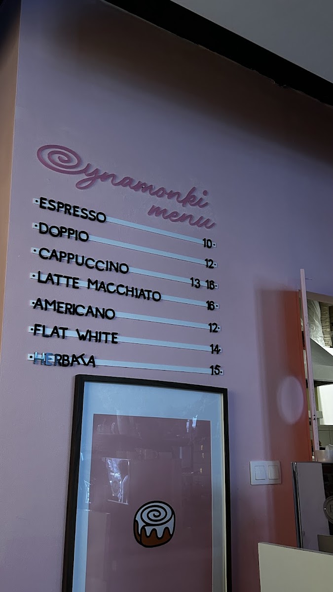 The menu at Cynamonki offers a straightforward selection of comforting café treats centered around their signature cinnamon rolls and carefully prepared coffee drinks. It’s a place where the focus is on simple, satisfying flavors meant to be enjoyed in a relaxed atmosphere, whether you're grabbing a morning pick-me-up or pausing for a sweet afternoon break.